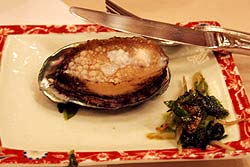 鯵ヶ沢温泉には着いて少しのんびりしてから夕食。今夜はお楽しみのアワビステーキ。以前食べたときには値段のわりに小さくてガッカリしたので、今回は初めからあまり過度の期待はせずにその時を待った。が、思った以上に大きくて、満足した。他のメニューも含めて大いに満足。で、その夜8時30分からじょんがら三味線の演奏会があったのだが、参加するつもりが酩酊して寝過ごしてしまった。 |