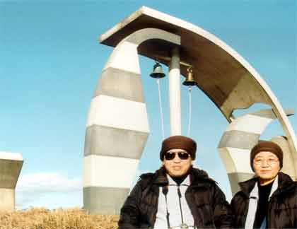 愛冠岬の突端へはバスの駐車場から500メートルくらい歩くと着く。岬の突端は断崖になっており、その文風光明媚だ。この何とも現代の若い人受けしそうなネーミングを施したのは誰かということもさることながら、そこには願いが叶うとかいう鐘まで用意されていて、夕暮れ時にさぞや愛をささやくには絶好のところのように感じた。もちろん我々のようなツアー客はそうしたこととは無縁で、津波のように押し寄せて無遠慮に鐘を打ちならし、それと岬の風景とっをカメラに納めると、また引き潮のように去っていくだけであった。