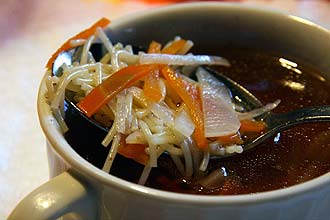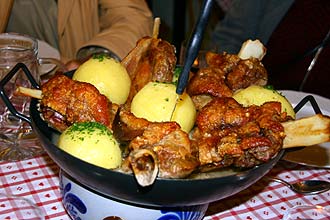 ここの名物はヌードル。卵入りのこの麺は、日本でいえばそうめんのような感じか。肉の団子添えが出てきたが、この団子はむしろまんじゅうと同じくらいの大きさのもので、ジャガイモと小麦の入った蒸しパンのようなもので、グルテン