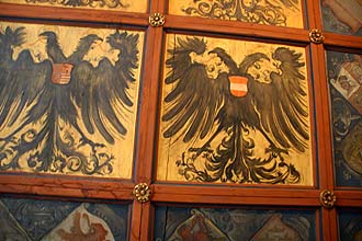 天井にはハプスブルク家の紋章が描かれている。レセプションルームと紹介された。