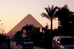 朝食後、ホテルの外に出てみるとギザのピラミッドが見えた。カイロは薄曇りであったが、クフ王のピラミッドと、その父のカウラ王のピラミッドを眺めることが出来た。