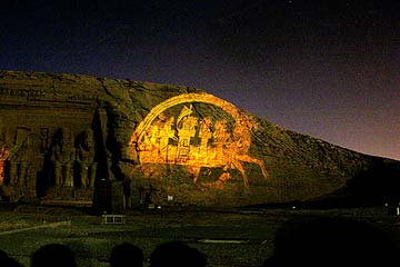 ショーは光と音楽だけではなく、一つのストーリーを持って行われた。エジプトの歴史の一部といっていいだろう話が展開される。光の色が変わり、岩山に映像が映され、なかなか見応えのあるものだった。