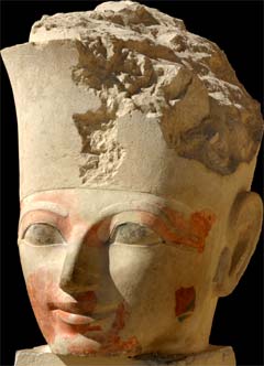 それから右に回り、ハトシェプト女王の顔の像(たぶん)を見る。壊された物が多い中で、これが一番きれいですよ、と言われてみんなで写した。
