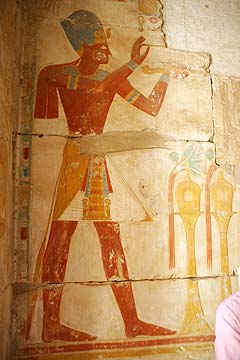 しからば、セティ1世自身のはどうなっているのか。それは逆に神々から祝福を得ている姿が描かれている。ただどういう訳か、この部屋の損傷が激しい。壁自体が剥離している部分も多い。