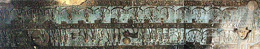 階段を上って屋上へ向かう。狭い通路にもレリーフがある。屋上から、古代の天体図が描かれている部屋へ行った。牡牛座や蟹座などもあって、大騒ぎしながら皆自分の星座を探していた。ただしこれはレプリカとのことで、本物はルーブル美術館にあるとか。