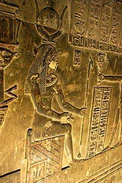 そのあと、地下室へ入る。狭い入り口で急なため、現地の人2人が入り口番をかねて手を貸してくれる。中も狭いが、少し行くと立って歩けるような高さにはなるが、すれ違うのには体をくねらせてやっとという幅しかない。ここには有名な壁画(電球?など)があるので、皆訪れるために、大混雑だ。そこにきれいにレリーフが残されている。クレオパトラの姿を写したというハトホルなどぎっしりと描かれている。