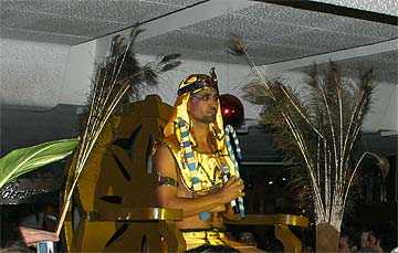 まずは数カ所設けられたお立ち台での踊り。それが終わるとファラオ入場。挨拶の後、ファラオも踊りまくる。それがちょっとおかまバーのような異様な雰囲気に感じた。