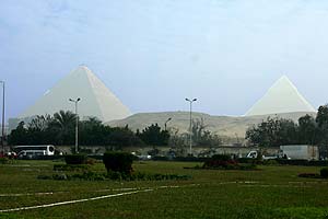 なのに、なのに・・・何とカイロ空港が濃霧のため閉鎖されているので、しばらく機内待機となった。延々と待つこと約5時間。ようやく12時近くになって離陸した。と約50分でもうカイロに着陸。こんなに近いのに何とかならんのか・・・カイロ到着12時27分。
