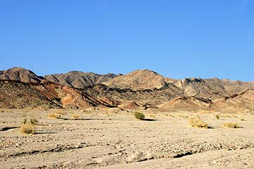 走っても走っても荒涼とした岩山。岩山は勿論ごつごつしている裸山だが、色合いが面白い。模様のように見える所もある。また、所々にオアシスがあって、ベドウィンの人たちの村がある。軍事施設もある。