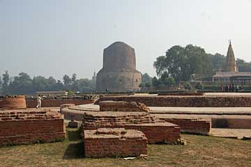 以前ここは森林だった。仏陀が初めて説法をした所(初転法輪の地)であり、仏教徒にとっての重要な聖地だ。先に書いたように仏教四大聖地の一つ。ブッダ・ガヤーで覚りを得た仏陀は、当時多くの宗教者が集まっていたベナレスを目指した。そして市の郊外の鹿野苑(現在のサールナート)に着いた後、かつてともに修行していた5人の修行者に出会い、自分の覚った真理を初めて語った。耳を傾けたのはこの5人と、森に住む鹿たち。ここで初めて「言葉」になった教えはその後世界へと広まっていくことになる。その意味で言えば、仏教が宗教として出発した場所と言うことになるだろう。