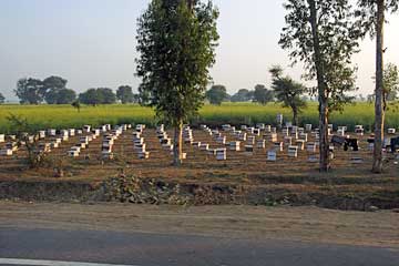 高い煙突はレンガ工場のもの。野生のクジャクや荷を運ぶらくだなど、日本ではとうていお目にかかれない物を目にした。