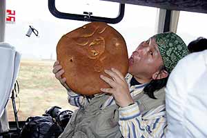 いくつかの村をすぎ、パンで有名というオロペサ村と言うところでバスはちょっと停まった。そこで大きなパンを購入した。顔よりも大きいそのパンは美味しいですよ、と言うお勧めのパンで、現地ガイドさんが購入し、みんなで分け合って味見した。まあ、普通のパンだ。蜂蜜か何かが練り込んであるのかほのかに甘いものだった。