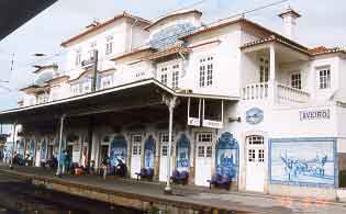 駅は思ったより小さかった。もっともこの町の規模から言えばこのくらいが妥当だろう。正面の壁を覆うように青と白のアズレージョがある。一つ一つが塩田の絵であったり此の地方の女性の絵であったり、今日泊まるホテルの絵であったりと内容は様々だがこの地方を紹介しているには違いない。プラットホームにも出入り自由なので行ってみると、そこの壁にも同じようにアズレージョがあった。きれいだ。確かに一見の価値あり(写真左の青い部分が絵タイル=アズレージョ=で飾られた部分)。