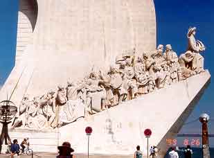 ジェロニモ修道院はテイジョ河を向いて、河から数百メートルのところに建ている。その河のそばにあるのが発見のモニュメント。我々からすれば発見されたモニュメントか。それからその前庭部分には世界地図があり、発見した年数が、たとえば日本なら1541年に大分に漂着した年度が記入されている。発見のモニュメントはエンリケ航海王子を先頭に船の舳先に見立ててその左右に航海関係の著名人が並ぶ。舳先からみて左側の後ろから二番目はフランシスコザビエルだそうだ。