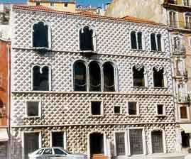 次に現代の庶民の生活をかいま見ようと言うことで、リシュボアの大地震の震災をおおむね免れそれ以前の年代の建物がおおく残るアルファマ地区を訪れた。迷路のような路地裏を少しだけ散策したが、教会の後ろを少し頂戴して40人ばかりの生徒のいる小学校(こちらでは1年生から4年生までにあたる子どもたちがかよう)、そしてその教会の壁を物干しに利用しているところなど、興味深くみてあるいた。(写真はくちばしの家)