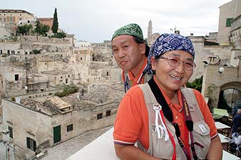 はじめに「サッソ・カヴェオーソ地区」というサッシが見渡せる所へ行って概略を聞いた。それから歩き始めた。下が滑りやすい材質の上に下り坂なので足下を注意しながら歩いていった。しかしこの足下の下にも家があるのだ。元々は崖ではなかったろうか。そんなところによくもまあ造ったものだ。そういえばばっこうくつも同じようだったな。